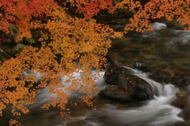 箱滝、落雲の滝、千猿の滝などたくさんの滝と紅葉が一緒に楽しめるスポットです。夏には沢登りや川遊びも楽しめて涼しくて避暑におすすめです。