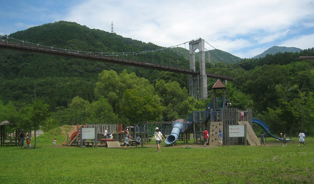 出典:www.kanagawa-park.or.jp高さ35m、長さ267mの公園のランドマーク「風の吊り橋」の麓にある「子どもの広場」には、コンビネーション遊具があります。