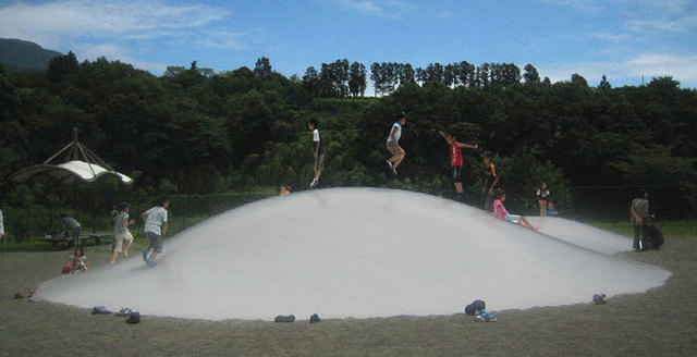 出典:www.kanagawa-park.or.jp同じく子どもの広場にある、まっしろな屋外トランポリンです。普段とは違う、なんとも言えない感触のふわふわドームの上で、飛んだり、跳ねたり、転がったり子どもたちに大人気の遊具です。