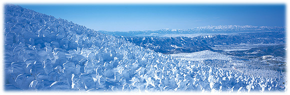山頂付近では樹氷を眺めることができます。中級者レベルのスキーヤーなら滑ることのできるコースもあるので、ぜひ山頂までチャレンジしてみてください!