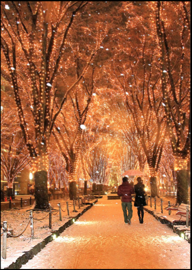 光のページェントのメインは、ケヤキ並木の電飾ですが、公園にはクリスマスらしい形のイルミネーションも!