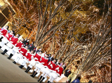 葉っぱにさえぎられることなく、密集して電飾を渡すことができる「SENDAI 光のページェント」は、電球がまるで葉のように見え、どこから見てもとても美しく輝いているのが特徴です。