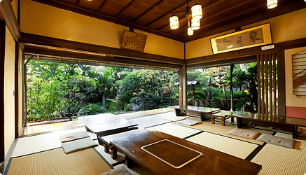 お屋敷の母屋にあたる本館は、座敷席を中心に約90席、酒造や長屋門を改装した離れは、椅子席を中心に約170席あります。天気の良い日には、庭園席でもこだわりの本格的な讃岐うどんが楽しめます。
