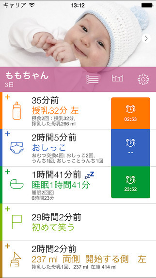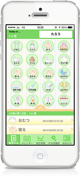 出典:itunes.apple.com生まれたばかりの赤ちゃんは細かく記録することがいっぱい。どのくらい寝たのか、おっぱいを飲んだのか、など。