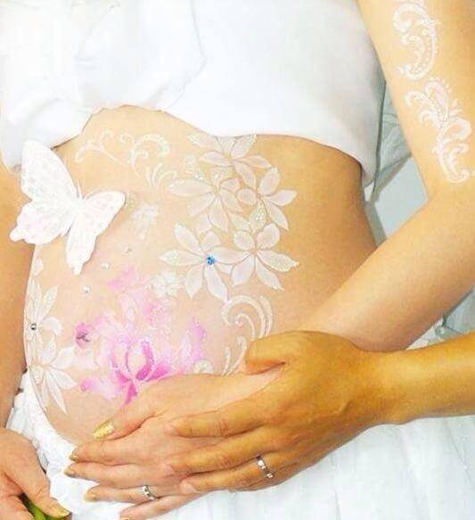 膨らんだお腹に素敵なアート作品を描いて頂き、綺麗にメイクした状態で撮影をしてもらうというものです。