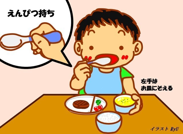 鉛筆持ちは子どももパパ、ママも気長に練習しましょう。3歳頃になると箸を使い始める保育園も多いのですが、近年では箸や鉛筆の正しい持ち方ができない子どもが増えていることから、箸への移行は焦らずにじっくりスプーンで練習することが大切とも言われています。