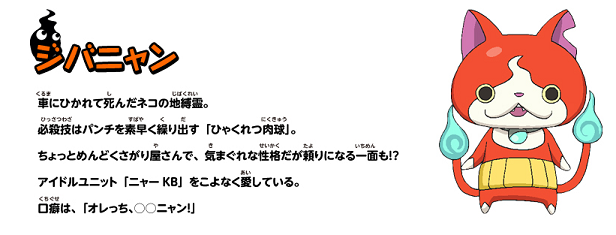 アニメ放送第一回目から登場しているネコの妖怪です。主人公ケータくんのお家に居候しています。
