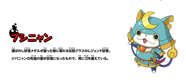 出典:www.tv-tokyo.co.jpブシニャンは、ジバニャンのご先祖さまです。その名のとおり武士で必殺技に刀を使うので特に男の子に人気があるかと思います。