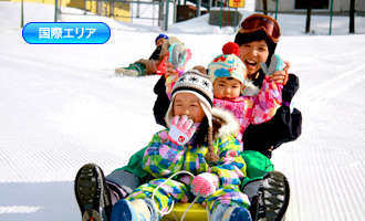 子ども用コースの「キッズキングダム」では、子どもたちが安心して遊べるソリエリア・雪あそびエリア・チューピングコースなどがありますよ。