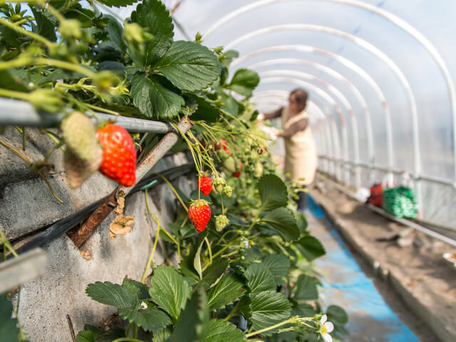 いちご狩りのシーズンに合わせて、同じハウス内でも収穫時期をずらして栽培している箇所もあります。農園の方に従って、指示された箇所からいちごを採りましょう。
