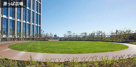 映画館のある3~4Fには「菜園広場」と「めだかの池」、5Fの屋上には「原っぱ広場」と「青空デッキ」という開放的な空間が広がっています。
