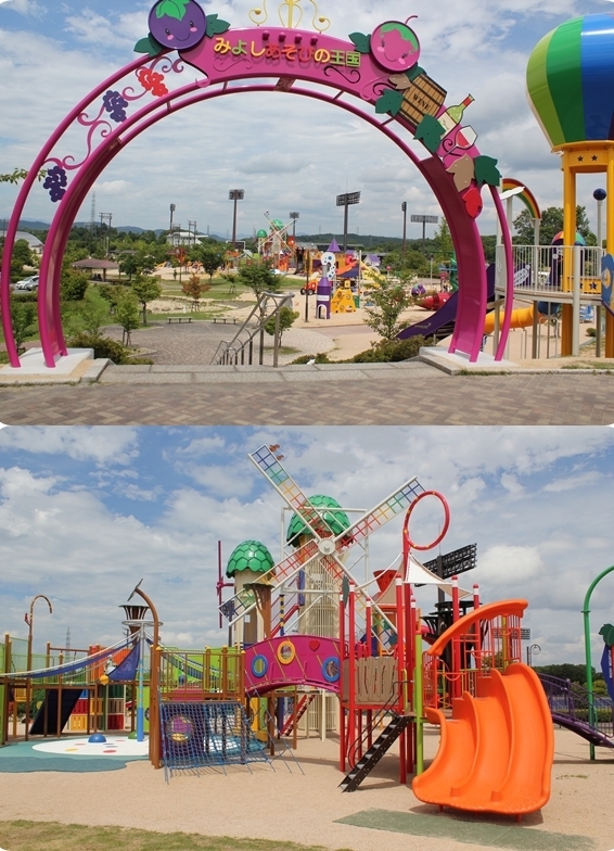 また、三次市は「ワイン」で有名なのですが、そのワインが出来上がるまでをモチーフにした遊具はここでしか遊べません。