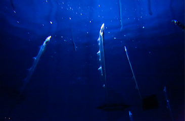 こちらは少しめずらしい「イルカに似たクジラ」や「タチウオ」も見ることができます。タチウオが泳ぐ姿は見たことがない方も多いと思うので、おすすめです。