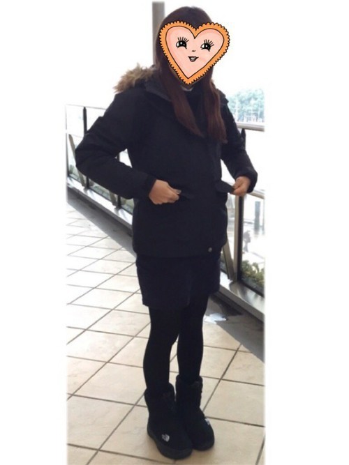 出典:wear.jp全身ブラックコーデで女性らしいコーデです。実は、着ているファーダウンコートは上のボーイッシュコーデの方と同じものなんです。合わせるもので、全く違うダウンコートに見えますよね。