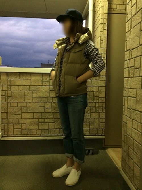 出典:wear.jpダウンベストにチェックシャツ、デニムのコーデです。アウトドアブランドなのに、アウトドアテイストが少ないと思いませんか?