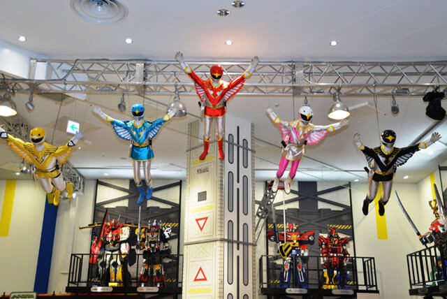 この展示スペースでは、歴代の仮面ライダーや戦隊ヒーローの展示が実物大で展示してありますので、おなじみのポージングなどを見る事ができます。