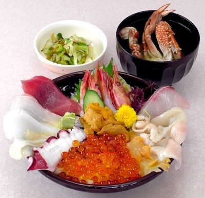 名物の海鮮丼は並、上、特上の3種類で、味噌汁や1品がついてお値段1,030円~1,620円と地元ならではのリーズナブルな価格!