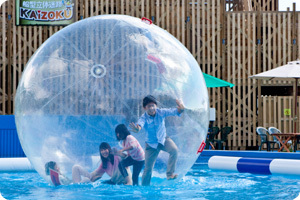 日本では体験できる場所が少ない水の上を歩いたり走ったりできるウォーターバルーンやウォーターロールがあり、1年中楽しむことができます。