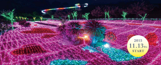 伊豆ぐらんばる公園では誕生50周年の記念特別企画として、2015年11月13日、敷地内に200万球のLEDライトが敷き詰められたイルミネーション「グランイルミ」が設置され、園内で様々な光の演出を楽しむことができるようになりました。