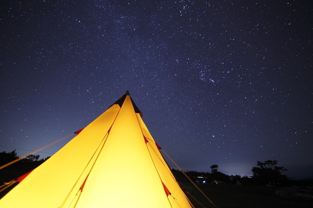 5人用ロッジ型テント(テント、マット付で5,000円)をレンタルすれば、広い室内空間でのテント泊が可能。テントはクリーニングをされているので清潔な状態が保たれています。