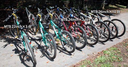 出典:www.woodpecker-cs.comまた、マウンテンバイクも貸し出ししています。サイズも22~26までそろっていて、1時間500円から24時間1,500円でのレンタルが可能です。