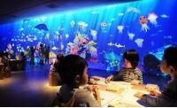 チームラボアイランドには、描いた絵が大画面を泳ぐ「お絵かき水族館」。みんなが描いた絵で街ができていく「お絵かきタウン」。