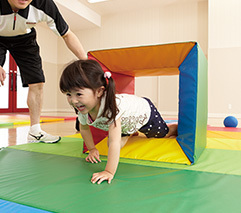 鉄棒や跳び箱、マットなどの器具を使い、遊びの感覚で運動能力の基礎作りを行います。