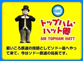 また、トーマスをはじめとして、きかんしゃたちは、トップハムハット卿のことを「Sir(サー)」と読んでいます。これは、英語での「○○卿(きょう)」という意味です。