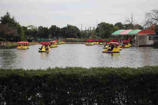 ゴーカート同様、足でこいでたのしめる水上自転車は、1艘10分の時間制限制。