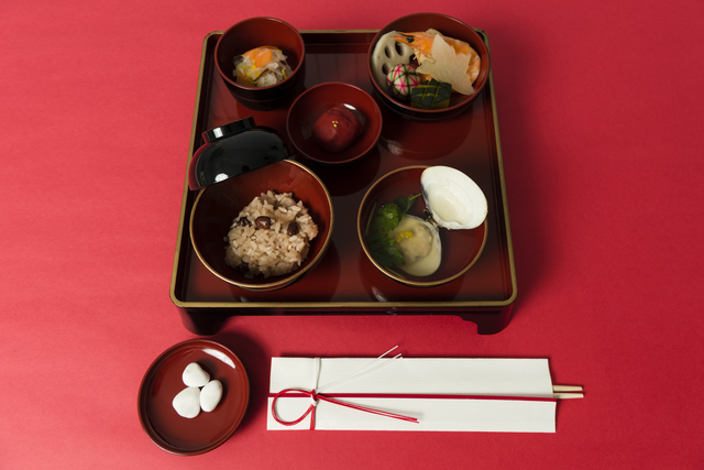紅白なますや「多幸」とかけたタコの酢の物などが多く使われます。また、「しわができるくらい長生きできますように」との長寿の願いを込めて梅干しを添えることもあります。