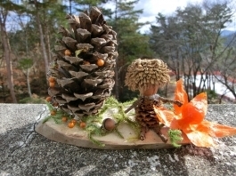 普通の3倍もの大きさのまつかさを使った「まつかさツリー作り」は、小さな子どもでも楽しむことができます。