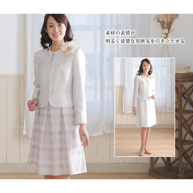 入学式・入園式は、春らしいパステルカラーやベージュ、白など明るい色彩のスーツが人気です。明るい色といっても派手すぎる色は避け、上品な淡い色を選びましょう。