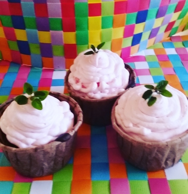 (6)カップケーキの上にジャムを小さじ1杯乗せ、上に(5)で完成したホイップを絞ったら完成です!