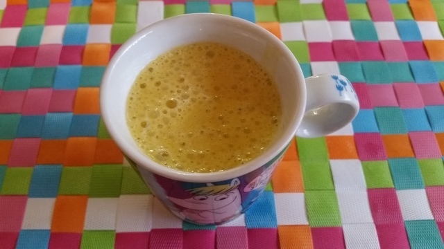 これで、子どもが大好きなカボチャスープの完成です!牛乳だけでも美味しいんですが、生クリームがあれば、牛乳の量を200ml、生クリーム100mlにするともっとコクが出ますよ。