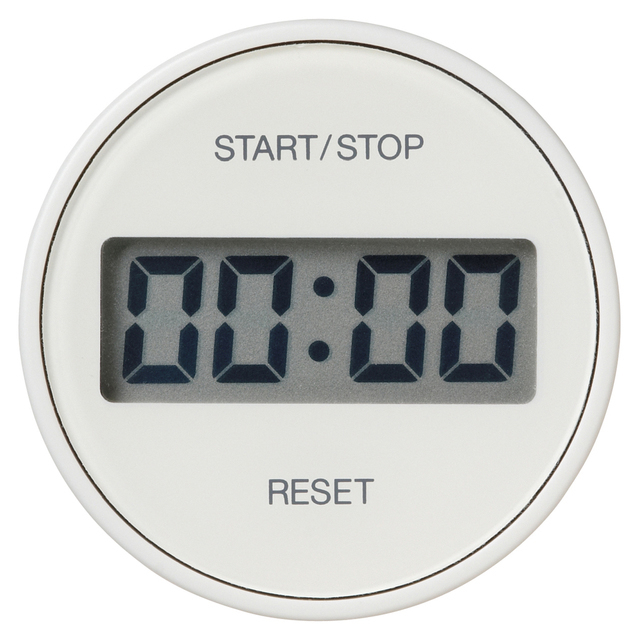 ボタンがたくさんついていない分文字も見やすく、白一色なので、すっきりとさせたい台所にぴったりのほか、子どもの宿題や歯磨きなどに使うのもいいですね。お値段は1,900円です。