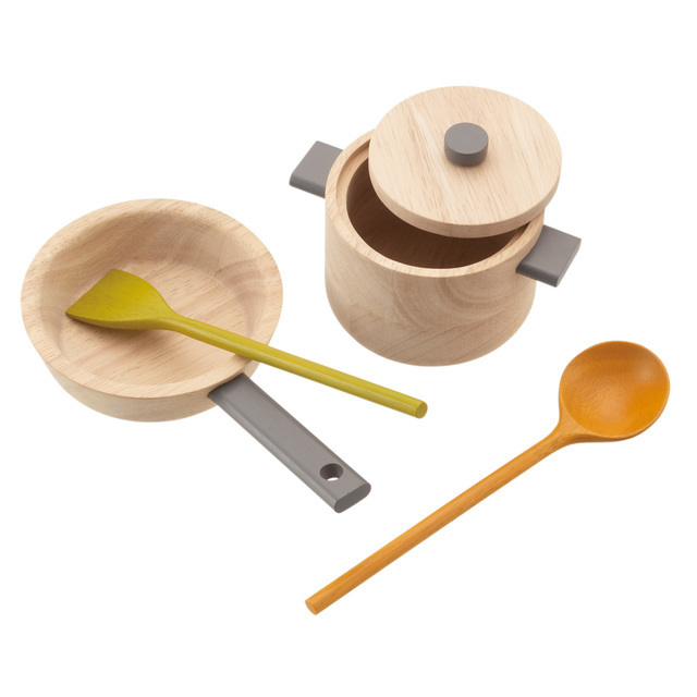 - ▼【番外編】木のおままごと フライパン・おなべセット