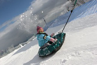 ファミリー向けのスノーランドがあり、雪遊びやそり遊びの他にも遊具がたくさん用意してあり、まるで、雪の上の遊園地です。