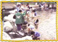 自分で食材を調達して食べるのはキャンプならでは。元気な魚を取るのにびしょ濡れになってしまいますが、子どもにとっては楽しい時間です。苦労して取った魚を頂くと言うのも特別な思い出になりますね。