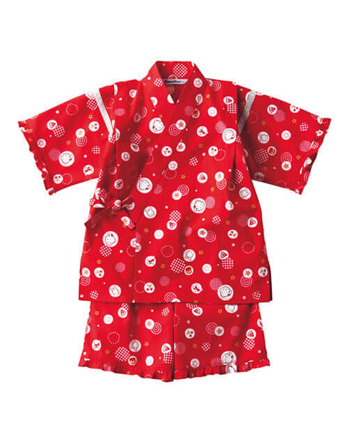 出典:www.ec.familiar.co.jp老舗子供服ブランドファミリアの甚平です。鮮やかな赤の生地に、和柄の中にさりげなくファミリアのキャラクター、ファミちゃんの柄が入っています。