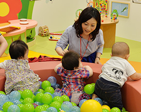 まず、18か月までのベビーが楽しく遊べるのが、ベビーガーデン。ハイハイから伝い歩き、よちよち歩きに子どもがのびのびと遊べる作りになっています。広々しているので、ゆったりすごせますよ。