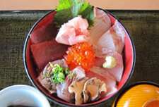 漁協直営の海鮮レストラン「網納屋」では、地魚を使ったお寿司や定食などのメニューがありますが、中でも一番のおすすめは水揚げされたばかりの魚を使った「海鮮丼」。