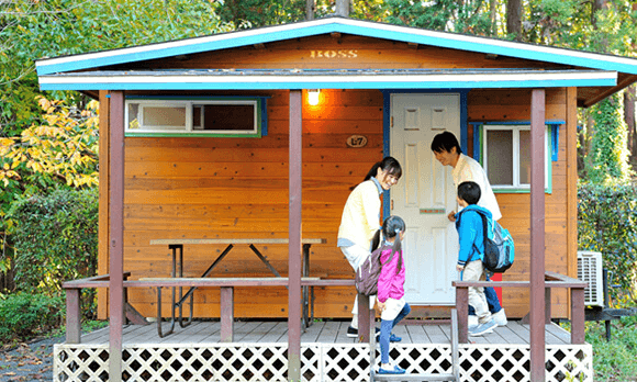 ログキャビン(トレーラーハウス)は、2016年3月にリニューアルオープンしたばかり。キャンプ初心者のファミリーでも、気軽にアウトドア気分を味わうことができますよ。
