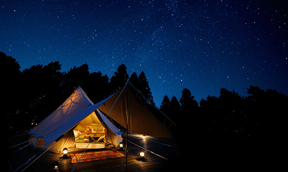 出典:www.twinring.jp森と星空のキャンプヴィレッジは、コットン製グランピングテント、寝具、ソファ、テーブルが設置されているキャンプの豪華版に宿泊ができるグランピングエリアです。