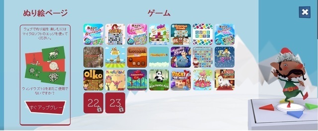 イブまではこちらも毎日更新されるサンタ村を探検して、カウントダウンやゲームを楽しむことができます。