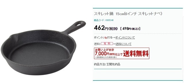 出典:www.nitori-net.jpそして、ニトスキの魅力は1つワンコイン500円の予算で買えること。15センチのスキレット鍋は、税込498円のお安さ。