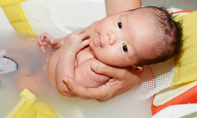 産後の沐浴は、退院したらママを中心に家族で入れることになります。お風呂時間は、生後すぐであっても、毎日同じ時間帯に入れることで生活リズムが整うとされています。