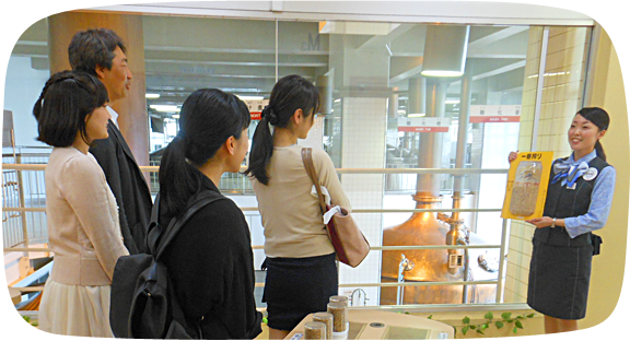 ビールを作る銅釜を見学したり、一番搾りと二番搾りの麦汁を飲み比べたりと「キリン一番搾り生ビールのおいしさの秘密を体感、見学するツアーです。