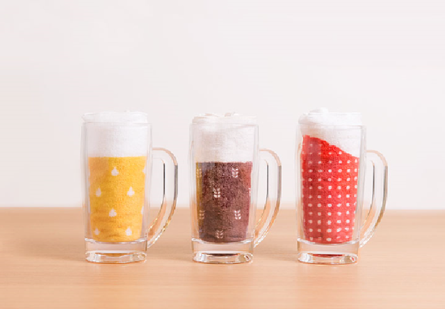 ジョッキにタオルを入れればおしゃれでかわいいインテリアにもなりそうです。ジョッキはパパにタオルはママと子どもで使ってもいいですね。