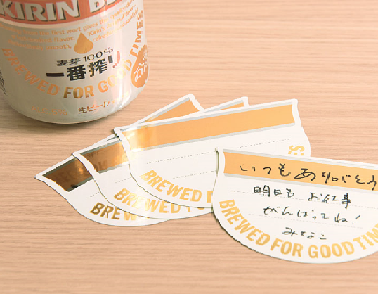 出典:www.kirin.co.jp缶ビールに貼れるメッセージシール「世界にひとつだけのキリン・缶」です。