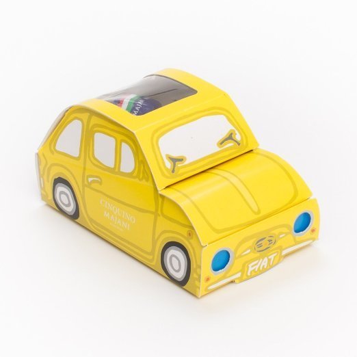 チョコレートは車型。ヘーゼルナッツたっぷりのおいしいチョコレートが5粒入っています。箱も車型です。